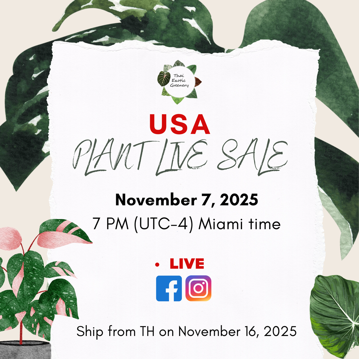 USA Plant LIVE Sale - November 7, 2025!