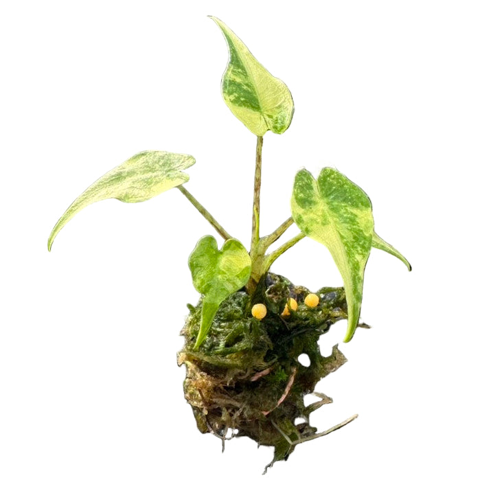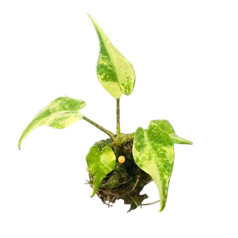 Alocasia Stingray Albo Variegated is a rare tropical plant known for its uniquely curved “stingray-shaped’’ leaves splashed with creamy white variegation. Its upright growth and elongated tail-like tips make it a striking collector’s specimen. Perfect for bright, indirect light to enhance variegation and maintain its vibrant contrast.