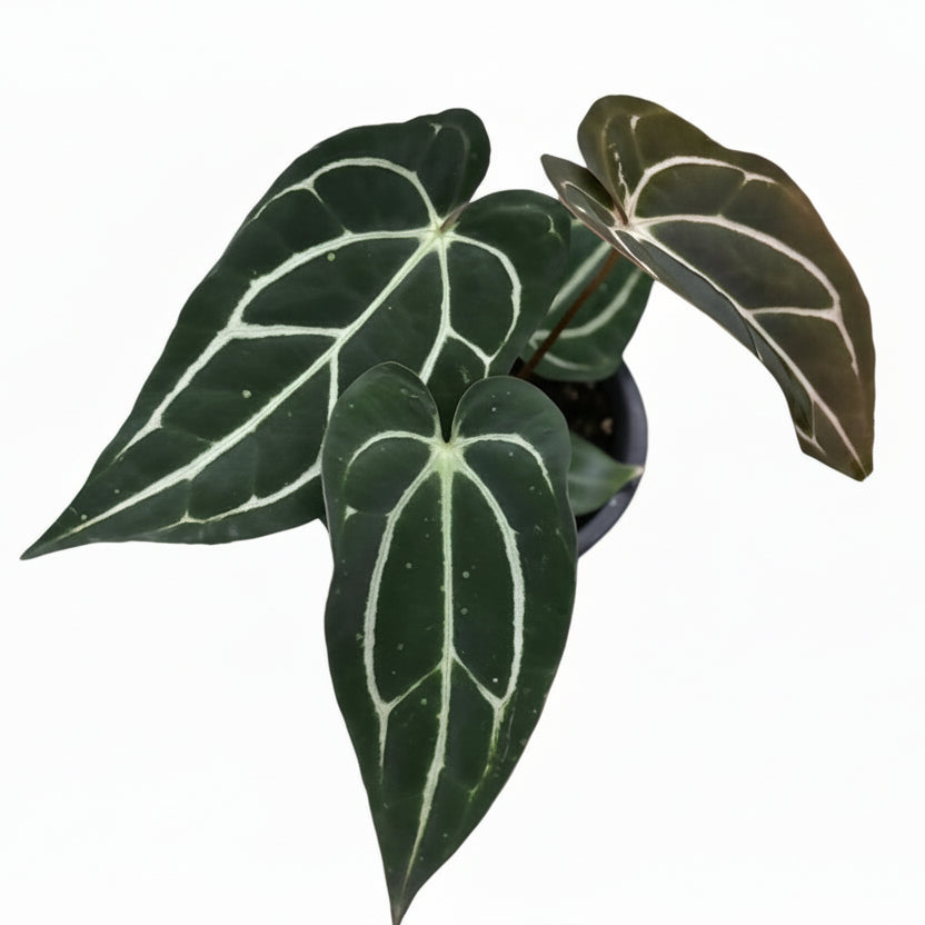 Anthurium Carlablackiae selfing features striking dark velvety foliage with bold, pale green veins. This rare hybrid aroid thrives in bright, indirect light and high humidity. Its heart-shaped leaves and compact form make it a prized choice for collectors seeking exotic and low-maintenance tropical plants. A perfect addition to any rare aroid collection, this Anthurium stands out for its elegance and unique leaf texture.